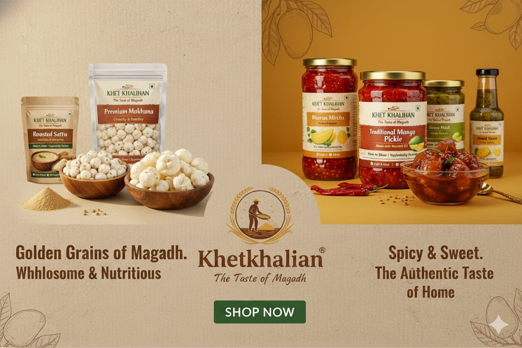 Khet Khalihan™ celebrates the agricultural heritage of Magadh by bringing traditional foods directly from farmers to modern households.